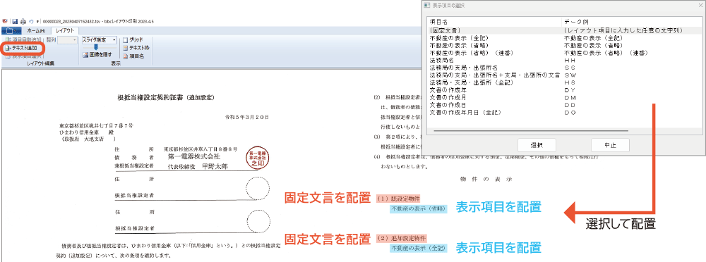 不動産登記規則別記第13号様式や登録免許税納付用紙にも申請番号、納付番号、受付番号が自動的に反映されます。印紙台紙も簡単に作成できます。