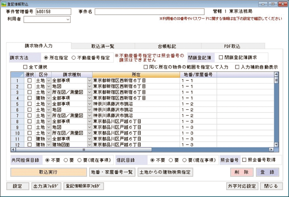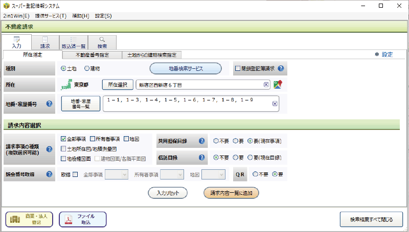 登記情報をシステムから請求、地番検索サービスと連動