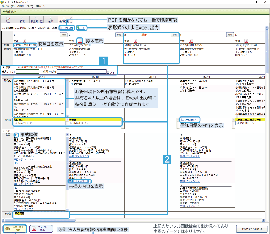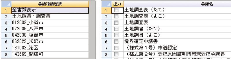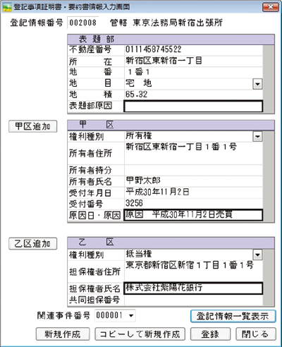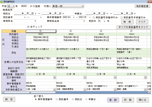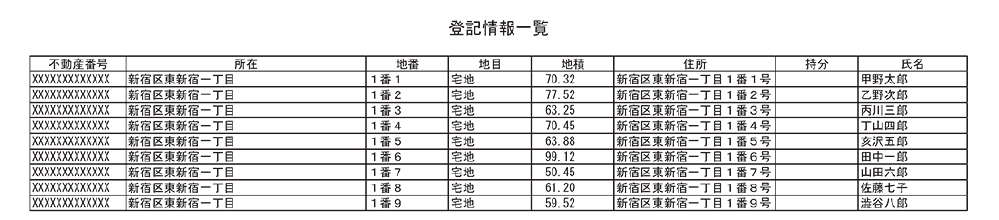 登記簿形式での一覧表示