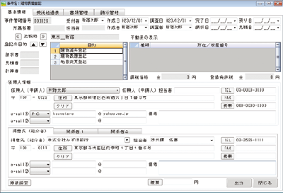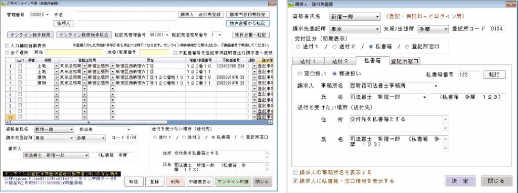 請求先の法務局や受領方法も初期設定画面で設定しておきますと、常に設定どおりの請求先、受領方法で請求できます。また窓口受領で請求した場合にも窓口受取情報を印刷することもできます。