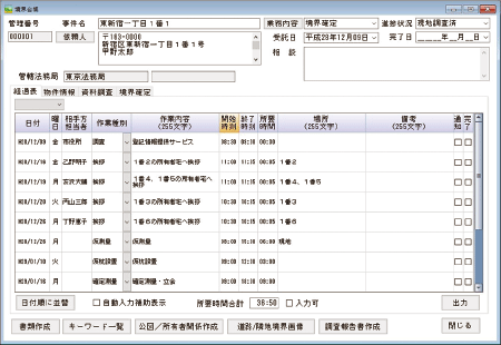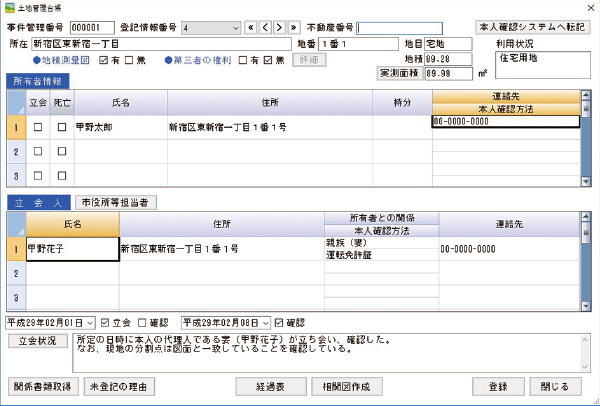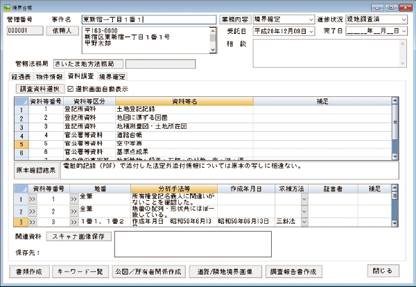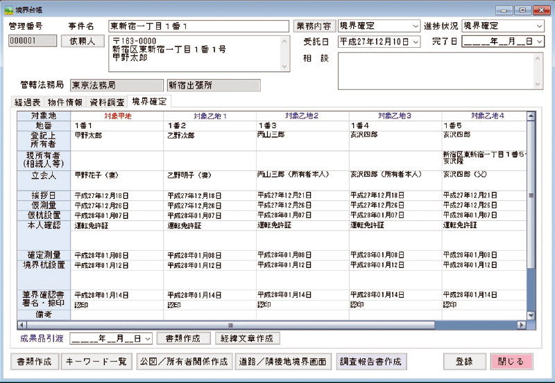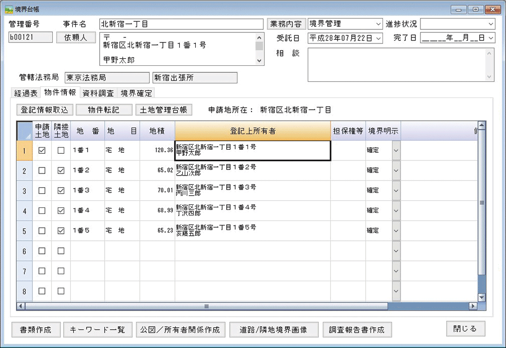 取得した登記情報を1筆ことに情報を追加でき、境界台帳で申請地・隣接地すべてを管理できます。