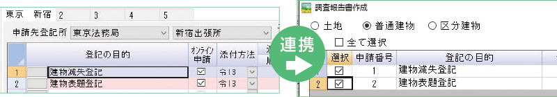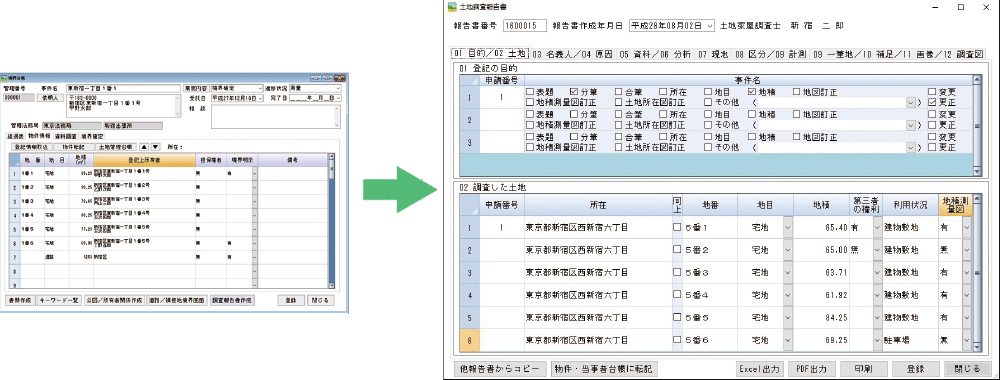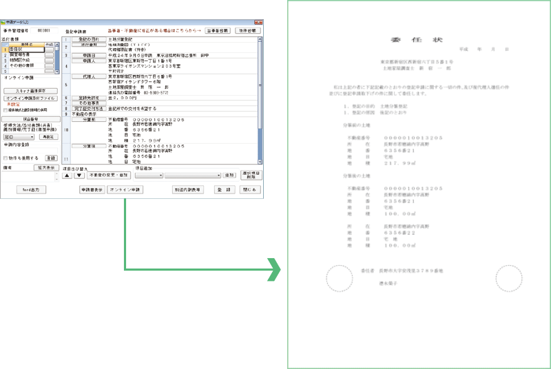 申請データを入力しておけば、調査報告書や委任状等にデータが反映します。