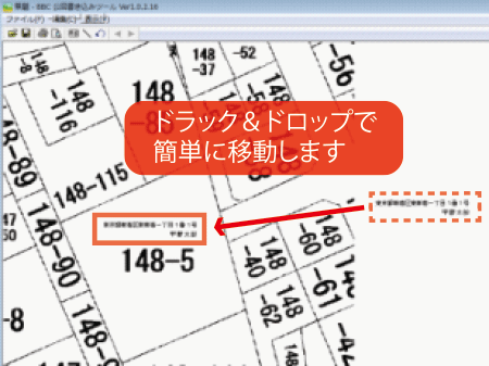 また、地番検索サービスとも連動していますので、住所から地番を検索して登記情報を請求する事が可能です。メニューから住所を入力し、該当物件上の地番をクリックすると、システム上に選択した地番が反映されます。