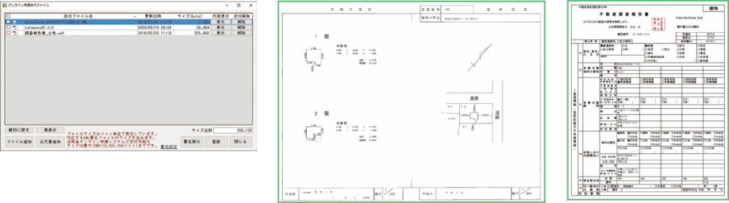 令和元年11月11日から開始された【調査士報告形式】に対応。原本提示を要する特例方式に代わり、原本提示を省略可能とするオンライン申請方式で、添付書類に電子署名が必要となります。