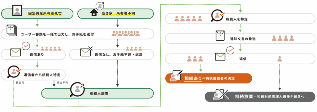 - 相続人調査が完了した後の事業用地取得や地籍調査業務の管理等を想定した機能です。