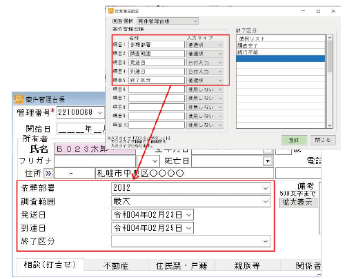 - 案件の管理項目および被相続人の属性項目を登録します。任意項目を設定できます。