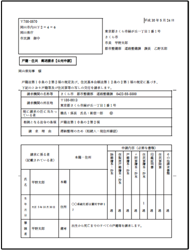 戸籍等請求管理のデータを基に公用請求書を自動的に作成(Word出力)します。