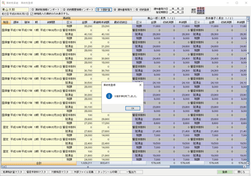 一部納付が行われた場合でも、簡単な作業で消込処理が可能です。納付額に達するまで一括選択もできます。納付の進捗状況は色分けし、分かりやすく表示。