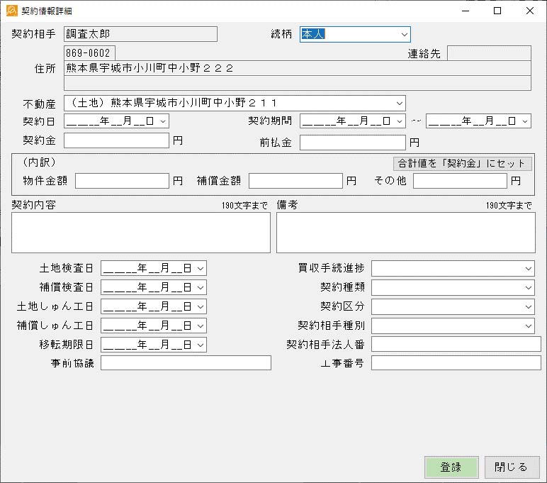 - 調査の対象となる不動産に関する情報を登録します。
