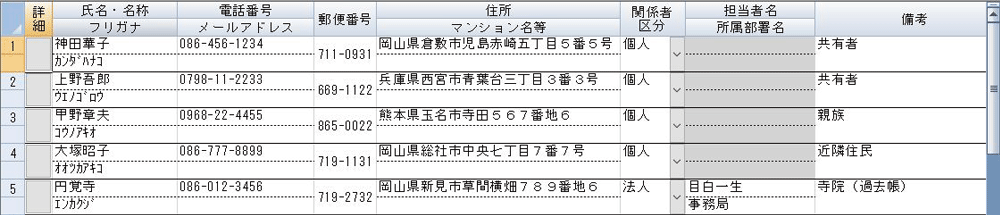 相続人調査の過程で関係した第三者や相続財産管理人等の個人・法人を登録します。関係者ごとに連絡や手続き等の履歴を登録し管理します。