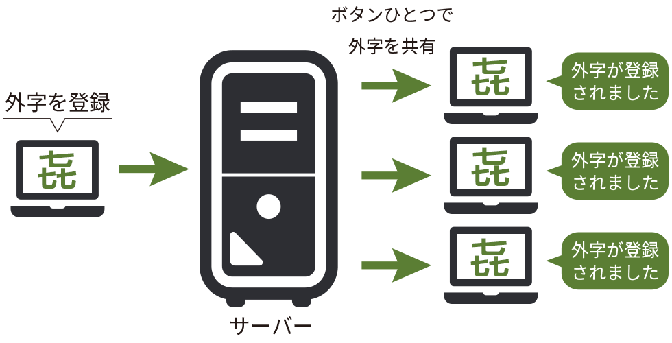 これまで外字を共有するには台数が増えるほどに手間も掛かり、管理も大変でした。