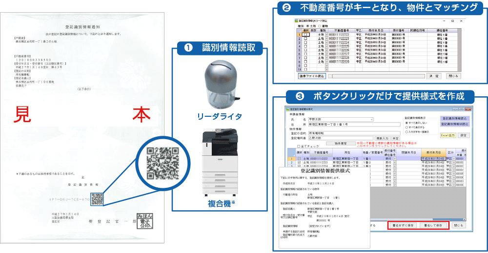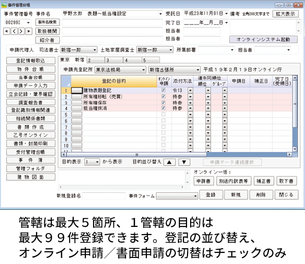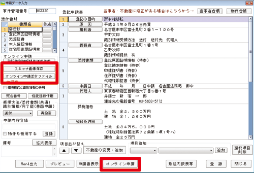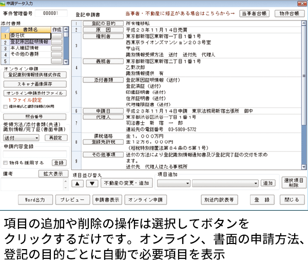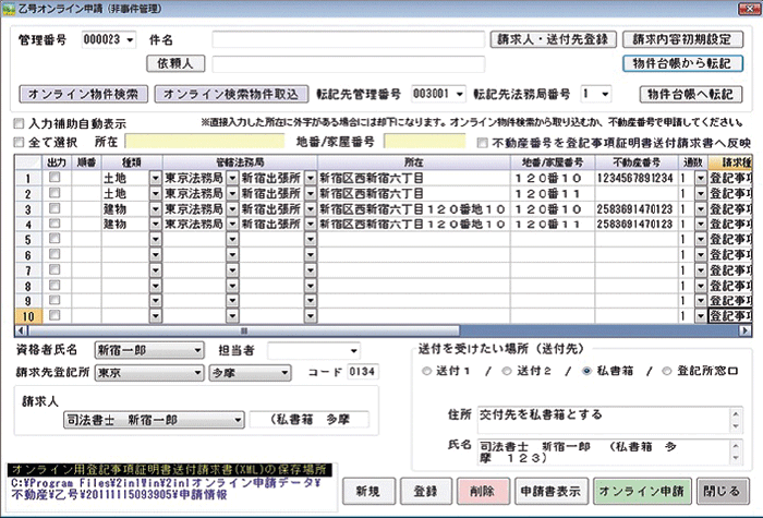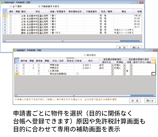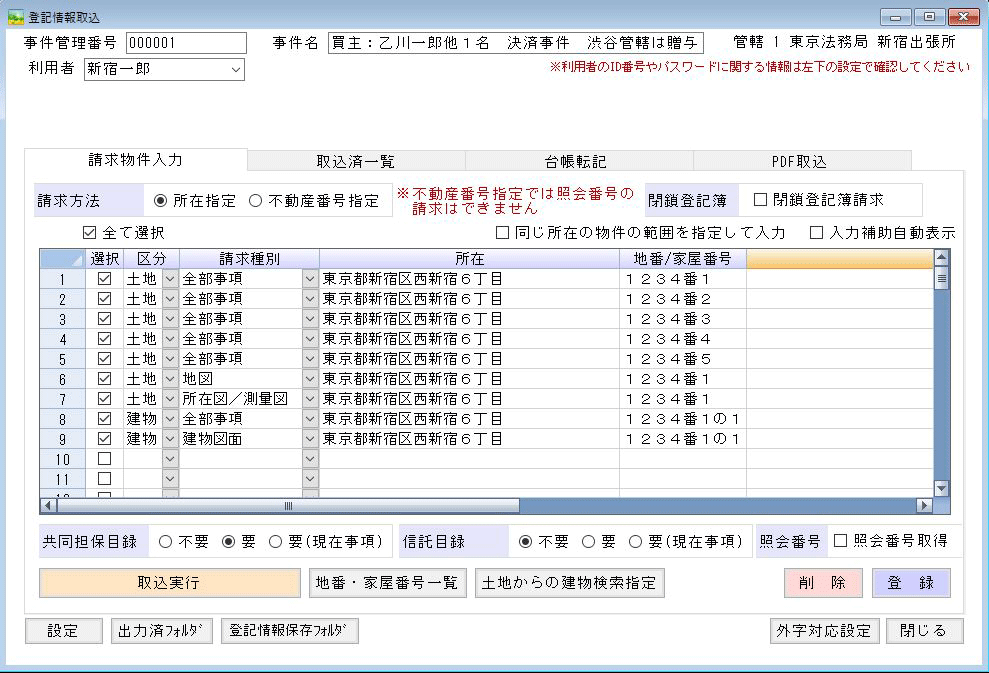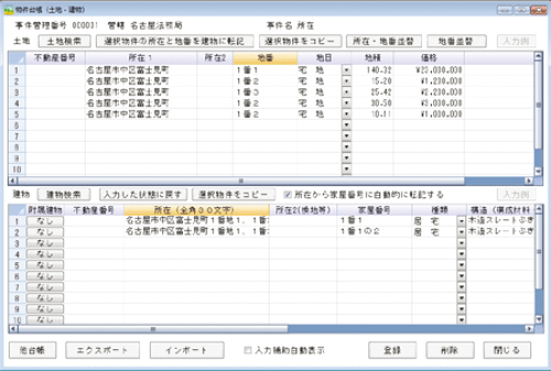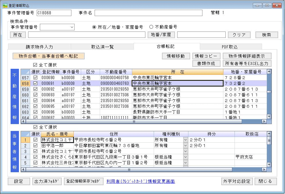 物件情報、所有者などの甲区欄、抵当権者等の乙区欄の住所・氏名をプログラムが判断し、各台帳へ情報をコピーします。