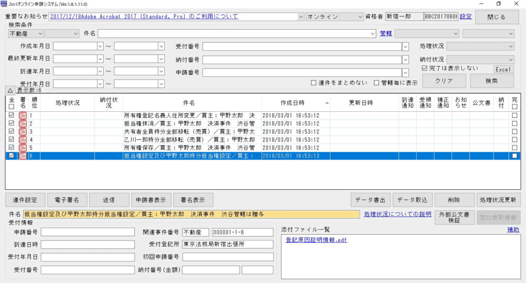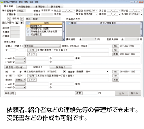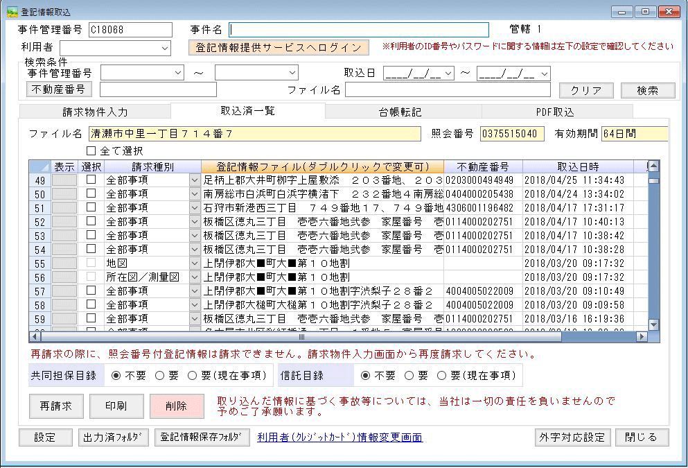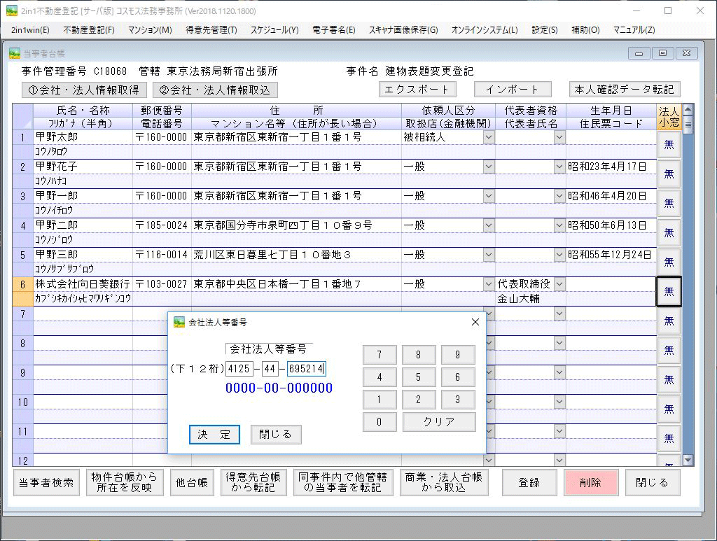 スーパー登記情報で請求した会社法人等の登記情報を、不動産システムの当事者台帳へ取込めます。取り込んだ会社法人のデータを申請人などにそのまま利用でき便利になりました。スーパー登記情報で不動産の情報を請求すると、一括で事件に取込むことも可能です。