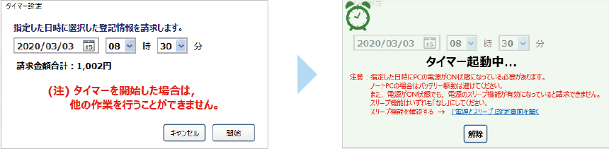 タイマー機能は、指定した日時に自動で登記情報を取得できる機能です。