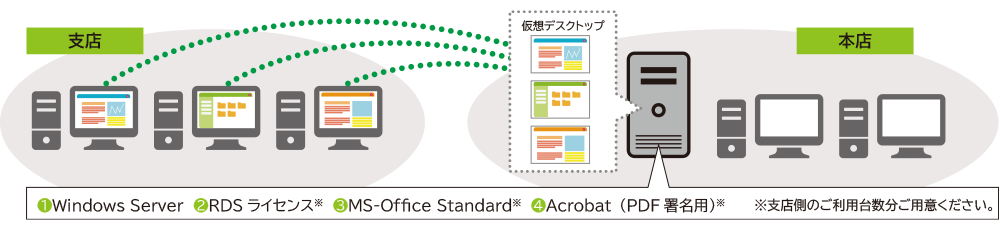 PC1台に対して複数台の同時接続を行います。詳しくはご契約されているシステム会社様等にご相談ください。