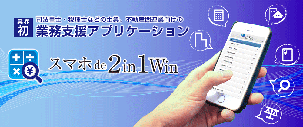 外出先やお打合せ時などに、スマホやタブレットから業務に必要な各種税計算、登記完了予定日、各地域の管轄法務局・裁判所・公証役場の確認、印鑑証明等有効期間、家屋証明の適否まで、その場ですぐに計算・確認ができるアプリです。