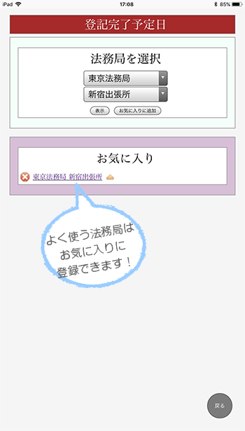 日本全国の管轄法務局を網羅!よく使う法務局を「お気に入り」登録しておけば、より簡単に情報を確認することができます!
