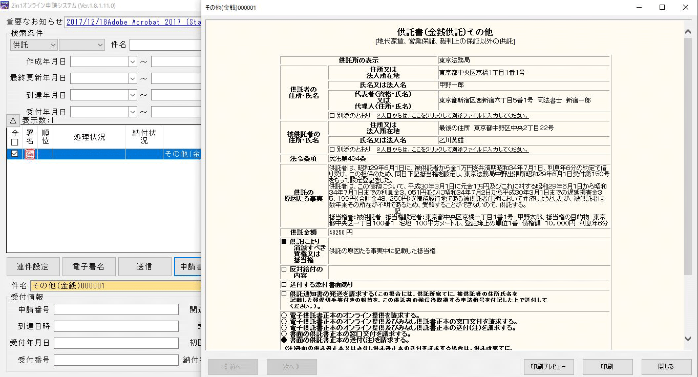- 弁済供託等の通知を要する場合に必要となる封筒も、封筒印 刷機能で簡単に印刷。