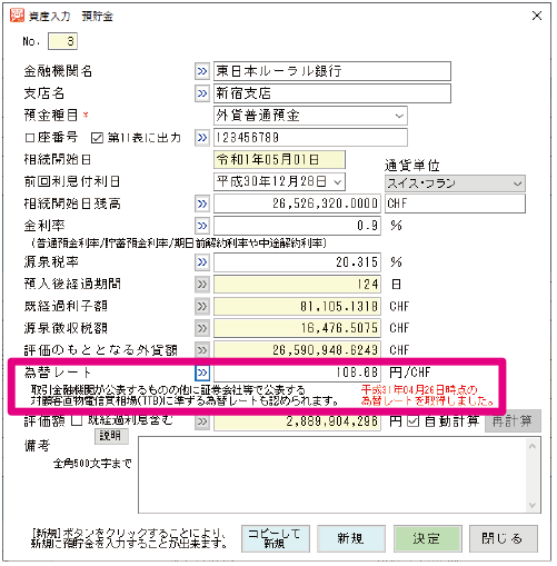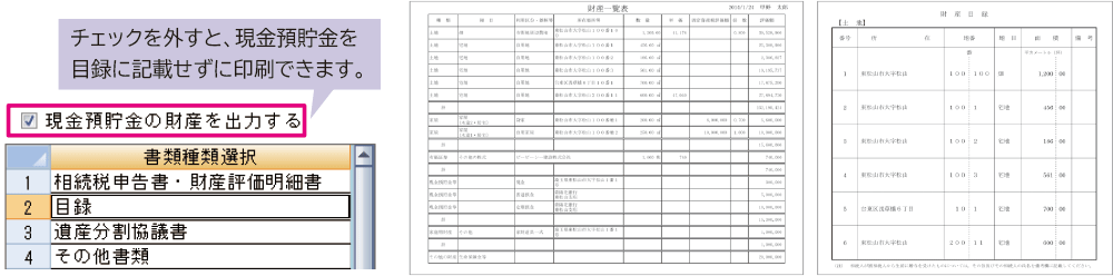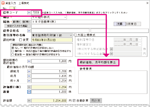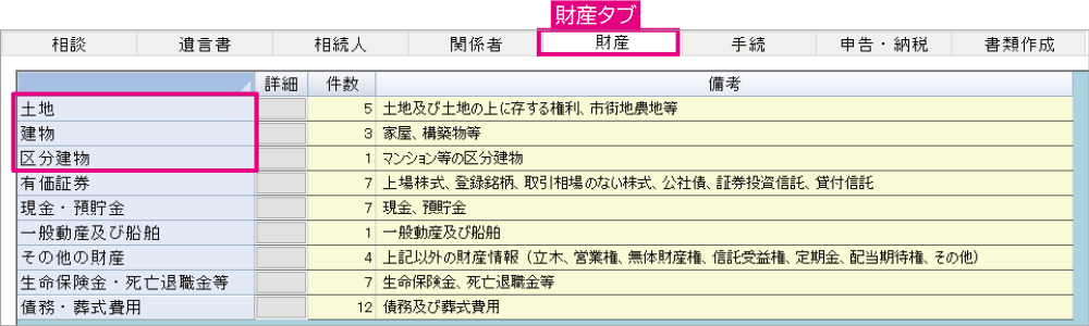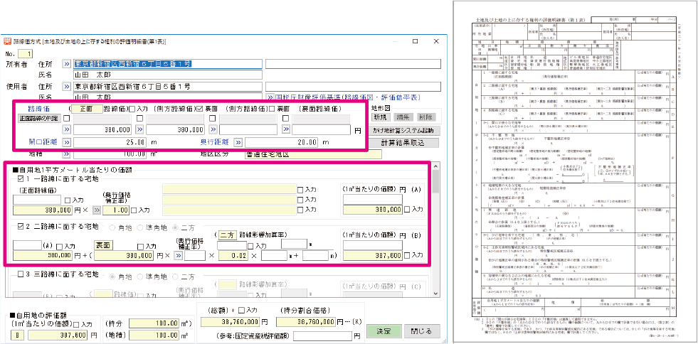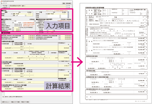 - 財産評価基本通達に基づいて計算した土地評価額や取引相場のない株式等の評価額をそのまま転記することができます。