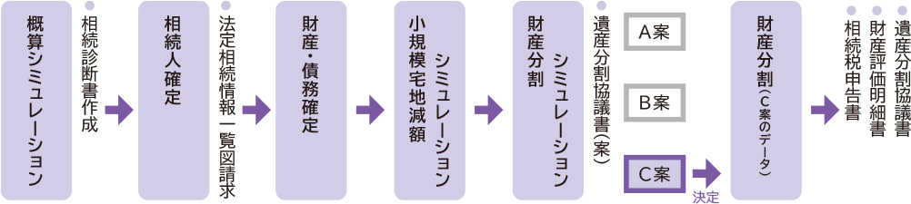 相続税の申告の要否にかかわらず、不動産や有価証券、預貯金等の名義変更等、相当な手間と期間を要する遺産整理に係る業務を管理することができます。