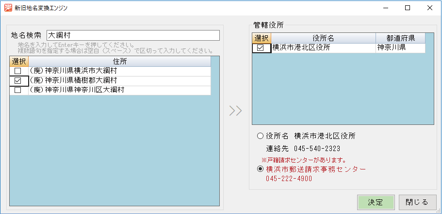 明治時代の古い地名(本籍・住所)からでも、現在の管轄役場を探せます!