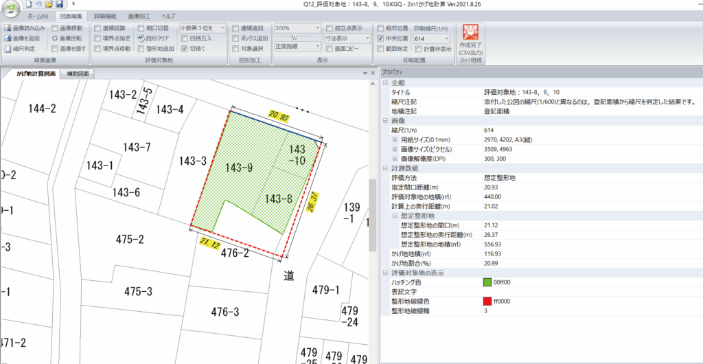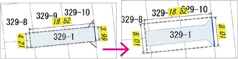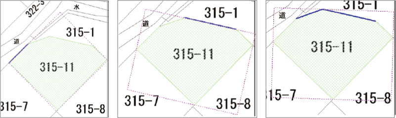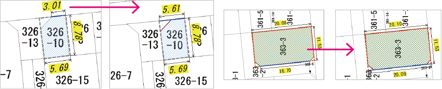 - 間口の形状により、想定整形地作成後、間口の角点を指定して、想定整形地の形状を調整する