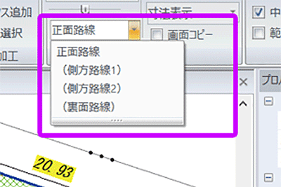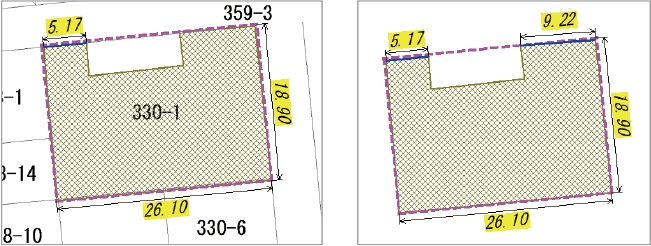 角切部分を有する宅地又は私道の間口を示す実線を、間口距離に合わせて延長・短縮する機能