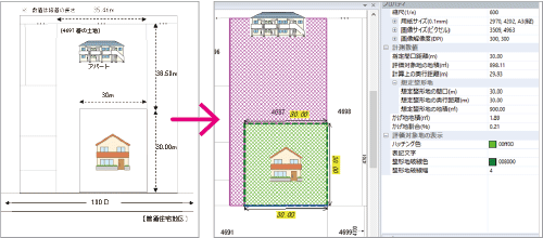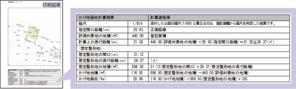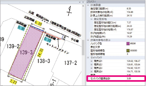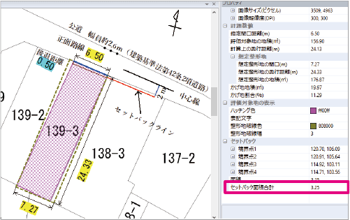 指定した接道からの後退距離を入力してセットバック部分の面積算出