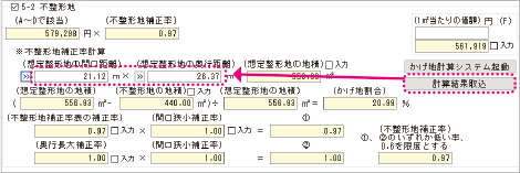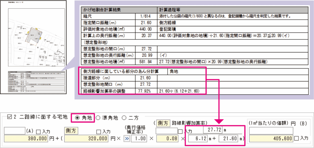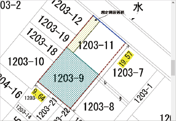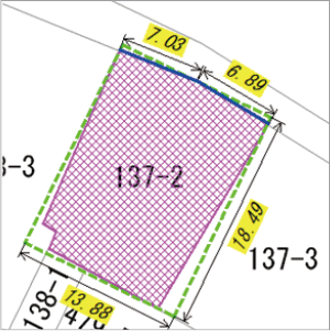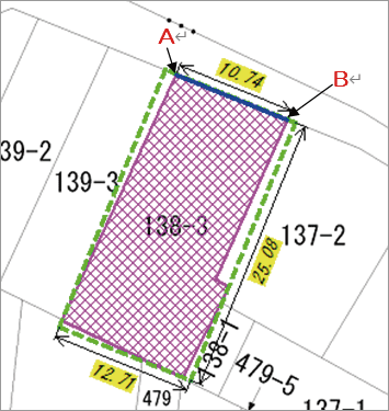 角切部分を有する宅地(私道含む)の間口距離を求める場合の機能。