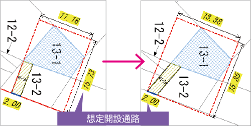 無道路地の場合に作成した想定開設通路を前面宅地の地形に合わせて平行移動