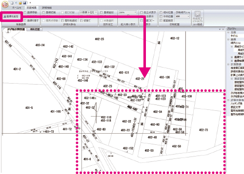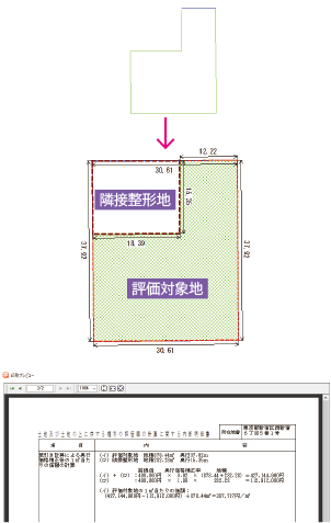 想定整形地(評価対象地)が、スクロールした位置に配置