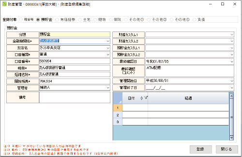 財産を登録することにより、入出金記録や財産の集計をすることができます。