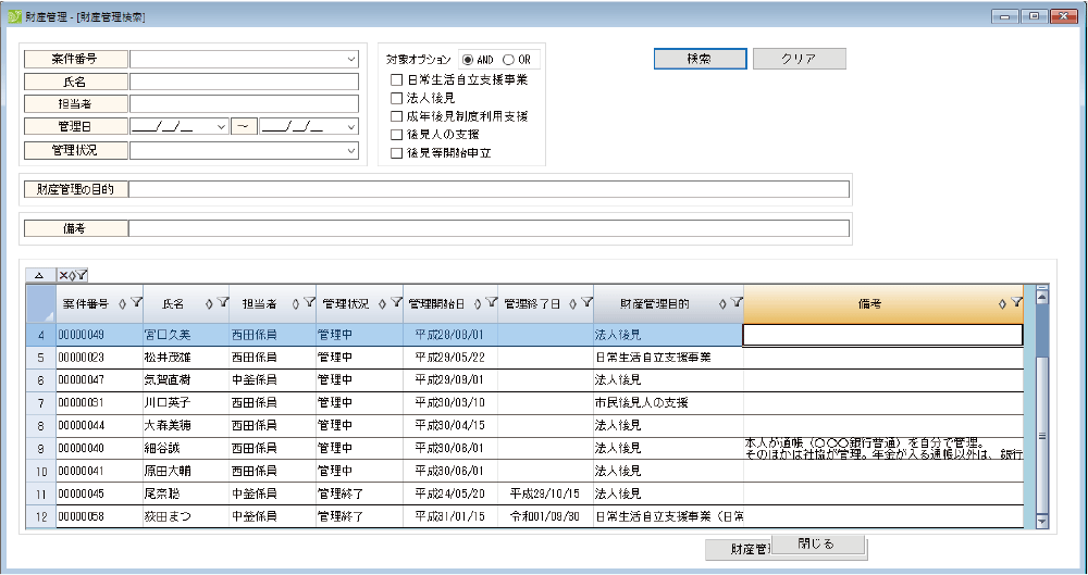 法人後見の情報管理・検索・出力