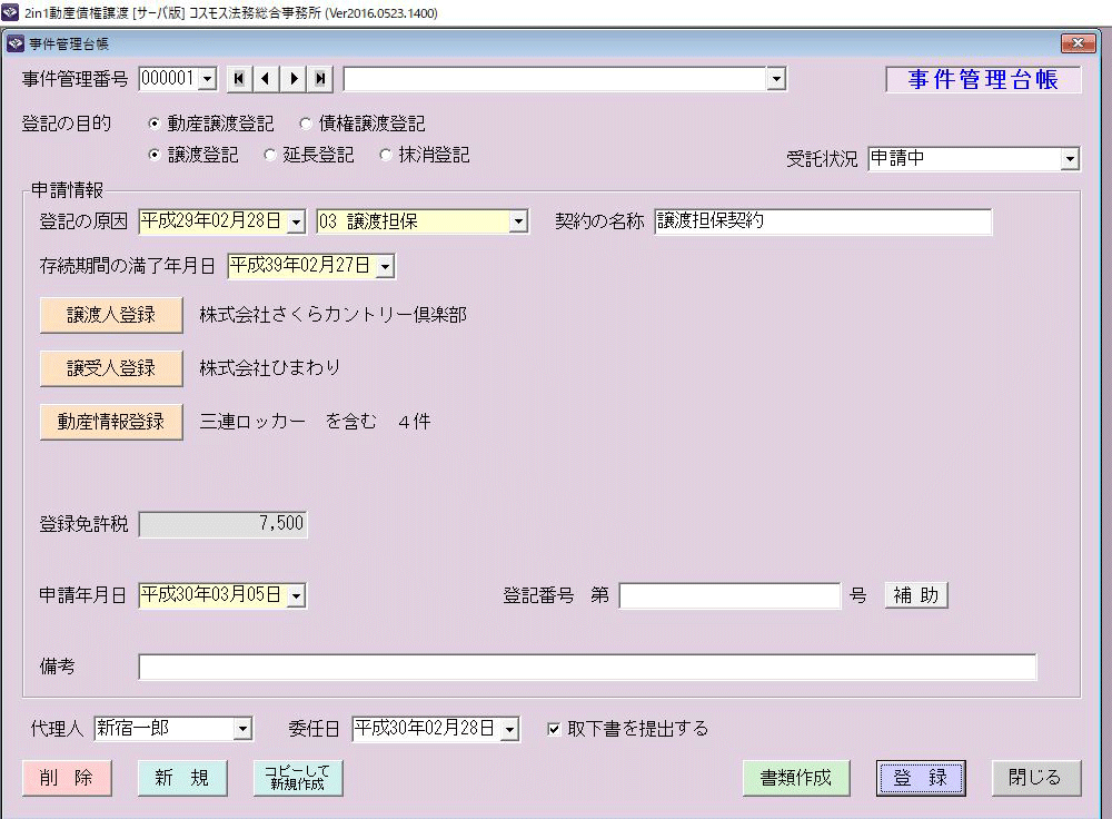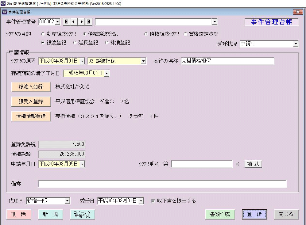 以前に行った登記について延長登記や抹消登記を行う場合、過去に入力した事件を検索して、いつでもコピー/編集でデータを有効にお使い頂くことができます。