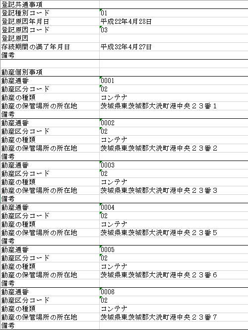 動産・債権譲渡システムで入力した内容が、そのまま事前提供データ(ZIPファイル)に反映されます。